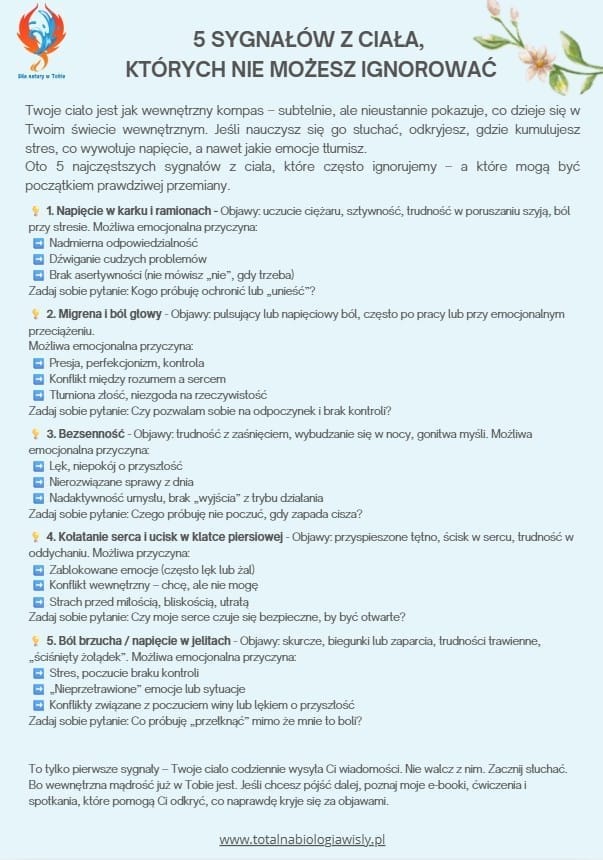 21 dni codziennej praktyki – zapisuj, obserwuj, czuj. Z czasem zobaczysz, jak Twoje ciało mówi coraz wyraźniej… i coraz łagodniej.