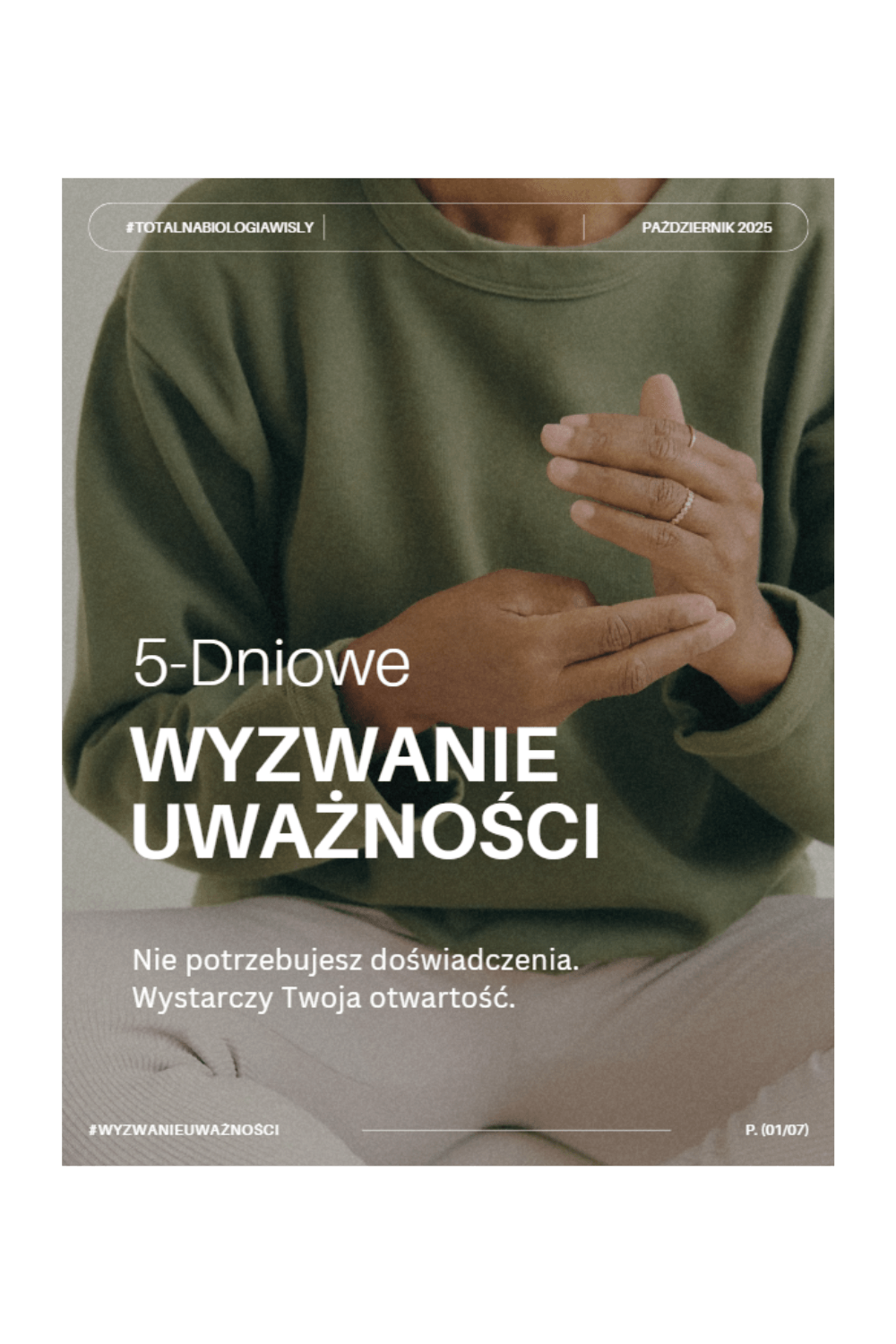To 5-dniowe wyzwanie uważności pomoże Ci na nowo połączyć się ze sobą i swoim ciałem. Każdego dnia dostaniesz krótkie, proste zadanie, które możesz wykonać w kilka minut – bez presji i oceniania. Dzięki tym małym praktykom zaczniesz czuć więcej spokoju, lekkości i obecności w codziennych chwilach.